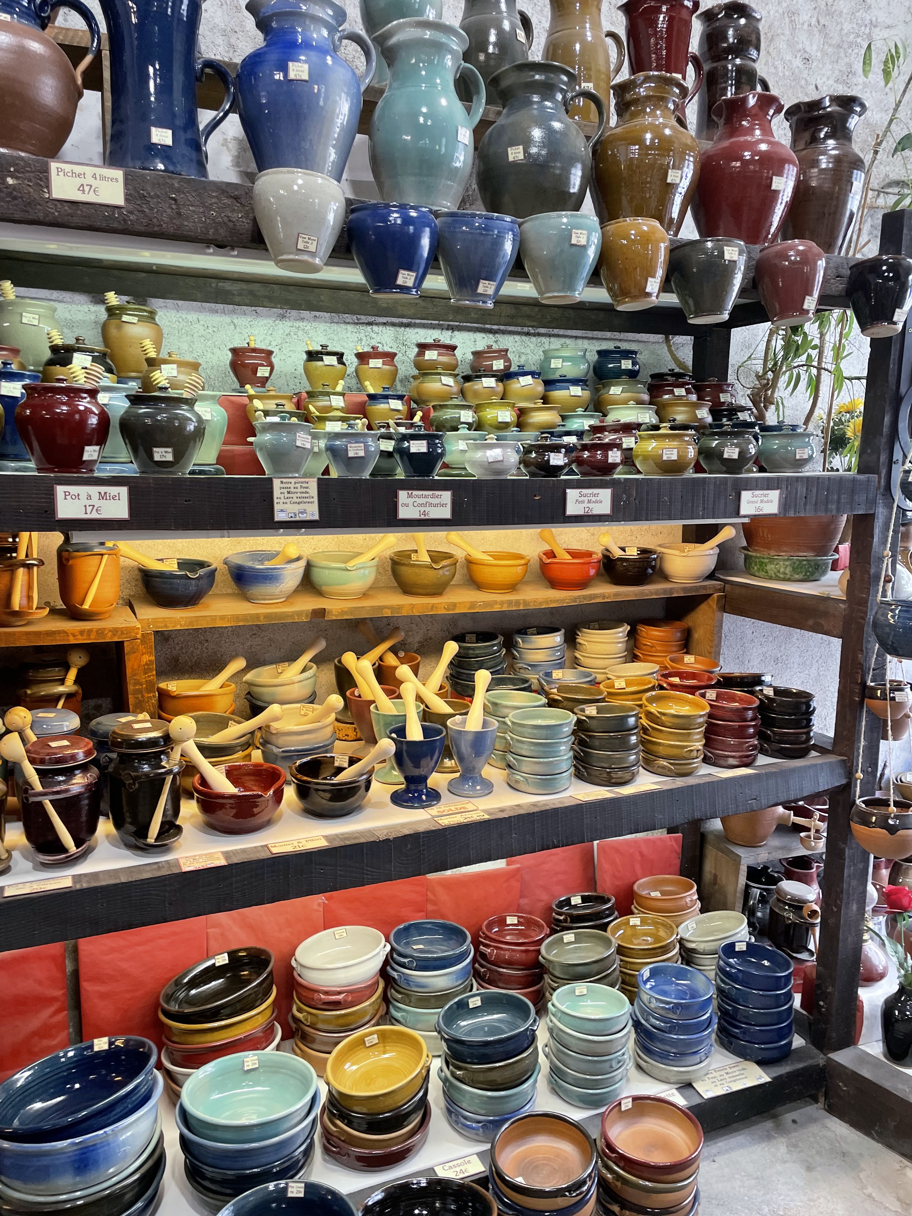 Poterie basique mais de qualité et à des prix très corrects. En rentrant dans la boutique j’ai su que j’étais au bon endroit pour trouver tout ce que je cherchais depuis un moment : de la poterie bleue. Il y avait plein de choses en dégradés de bleu sans trace de marron comme souvent. Franchement cela vaut le détour et j’y reviendrais si prochain passage dans le coin.